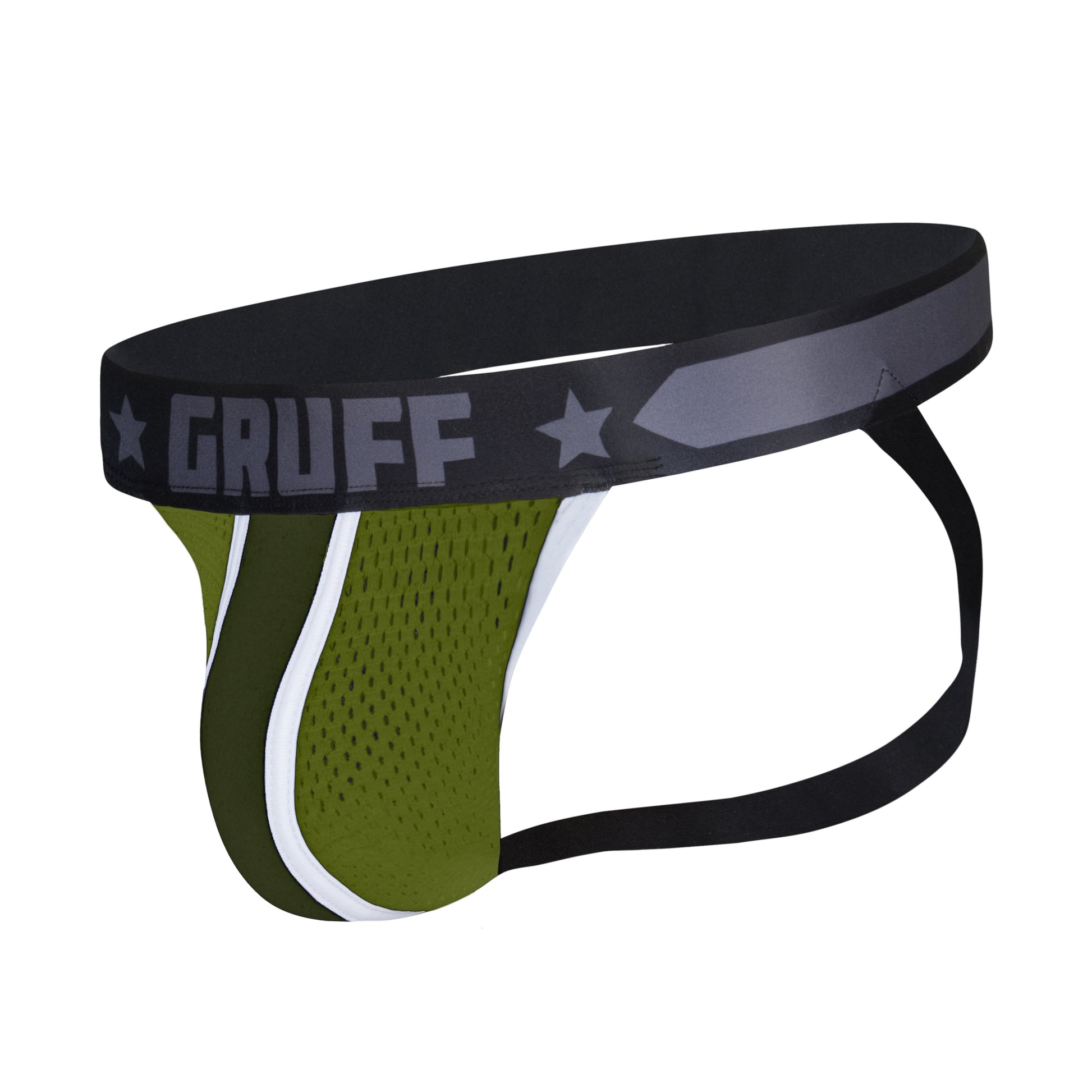 With its enhancing pouch and masculine design, this jock is sure to make a bold statement. Single Layer Mesh Panels: The sheer single-layer mesh panels on the pouch provide hot visibility to what's underneath with cool breathability where it counts! Choose between black or army green to match your vibe and stand out in style