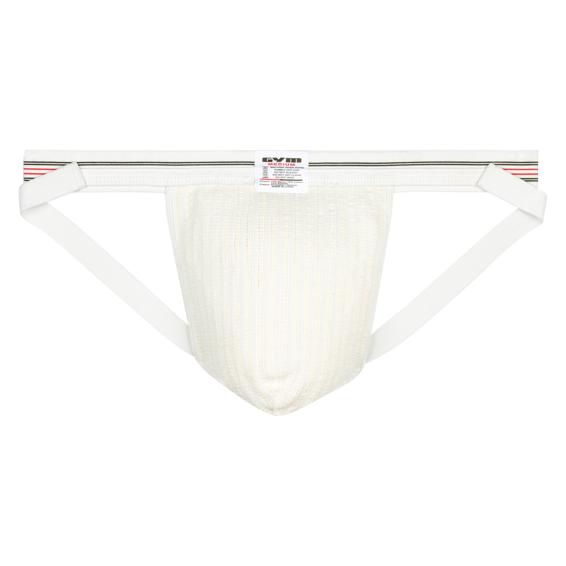 The GYM 1" Old School jockstrap is a classic 1" wide band athletic supporter great for swimming and running. Made with a thin 1" waistband and 1/2 leg straps. Made of a breathable mesh fabric material. Composition: Pouch is 73% Nylon, 12% Rubber and 15% cotton