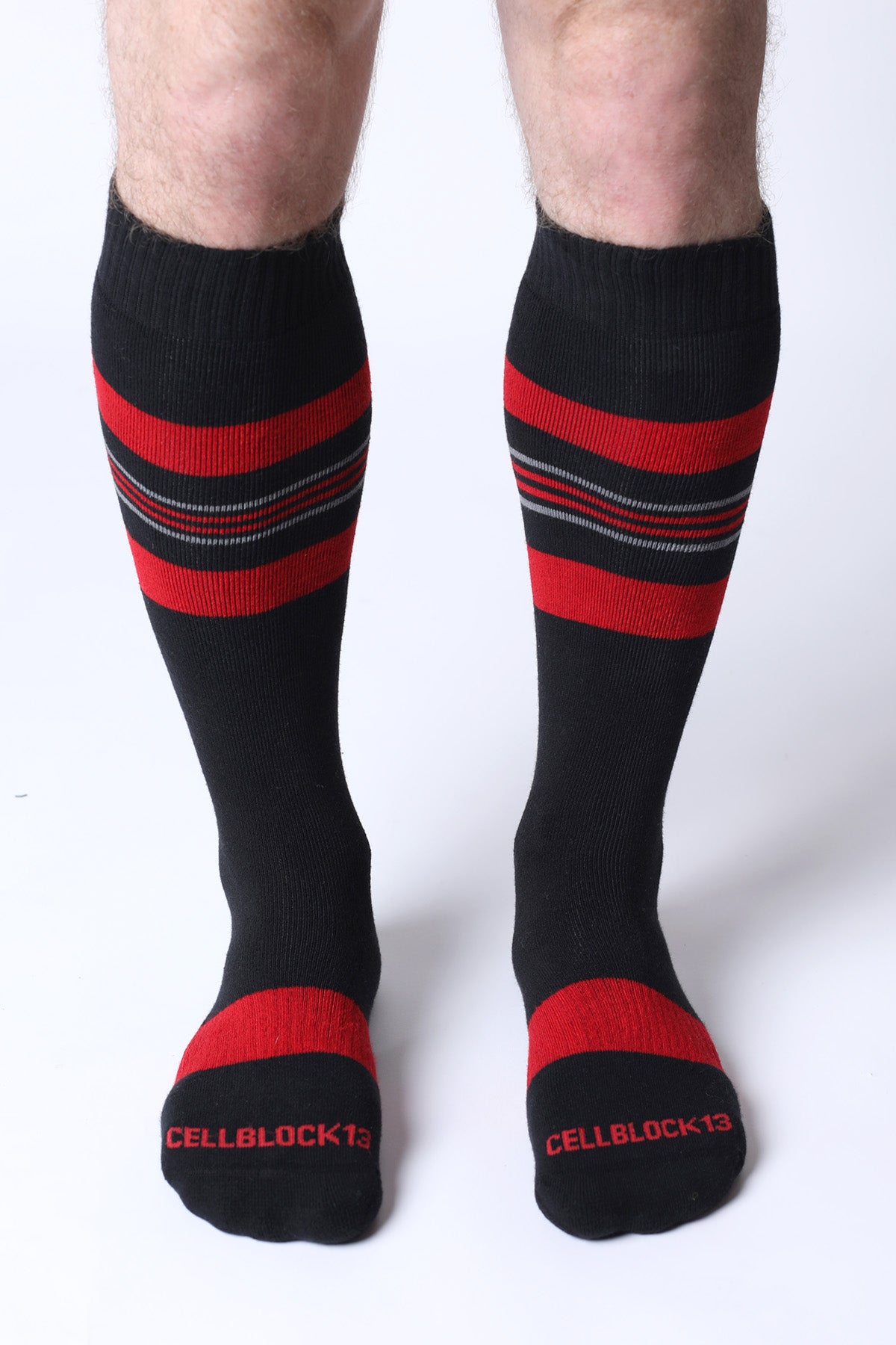 Complete your look with the CB13 Tight End Knee High Socks, designed to pair perfectly with the new Tight End 2" Snap Up SHADOW Jockstrap and the entire CB13 gear collection.