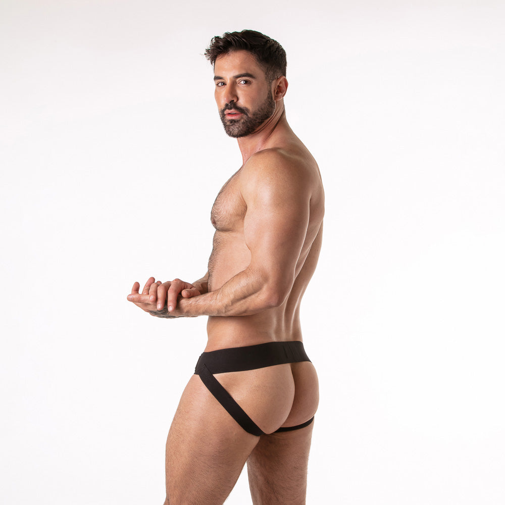 Low cut jockstrap made of the finest flexible, durable fabric. Made with high-tech, neoprene-inspired fabric with a composition of 86% polyester - 14% elastane. Extra wide 2.5" waistband with super thick leg straps for extra support. Features an iconic zamak padlock logo mounted on leatherette.