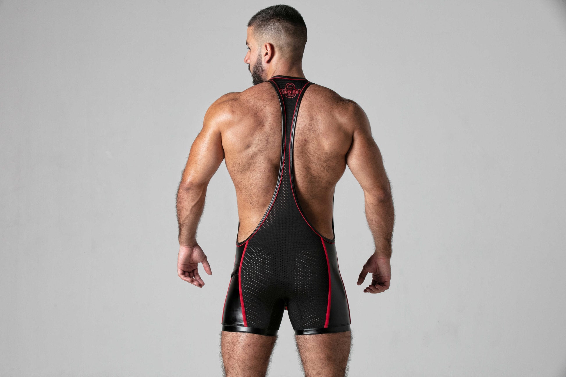 The Locker Gear Look At It Singlet is made of the finest breathable mesh fabric. Features a printed padlock logo on back, leatherette side details with contrast piping and a left hand side cargo pocket.