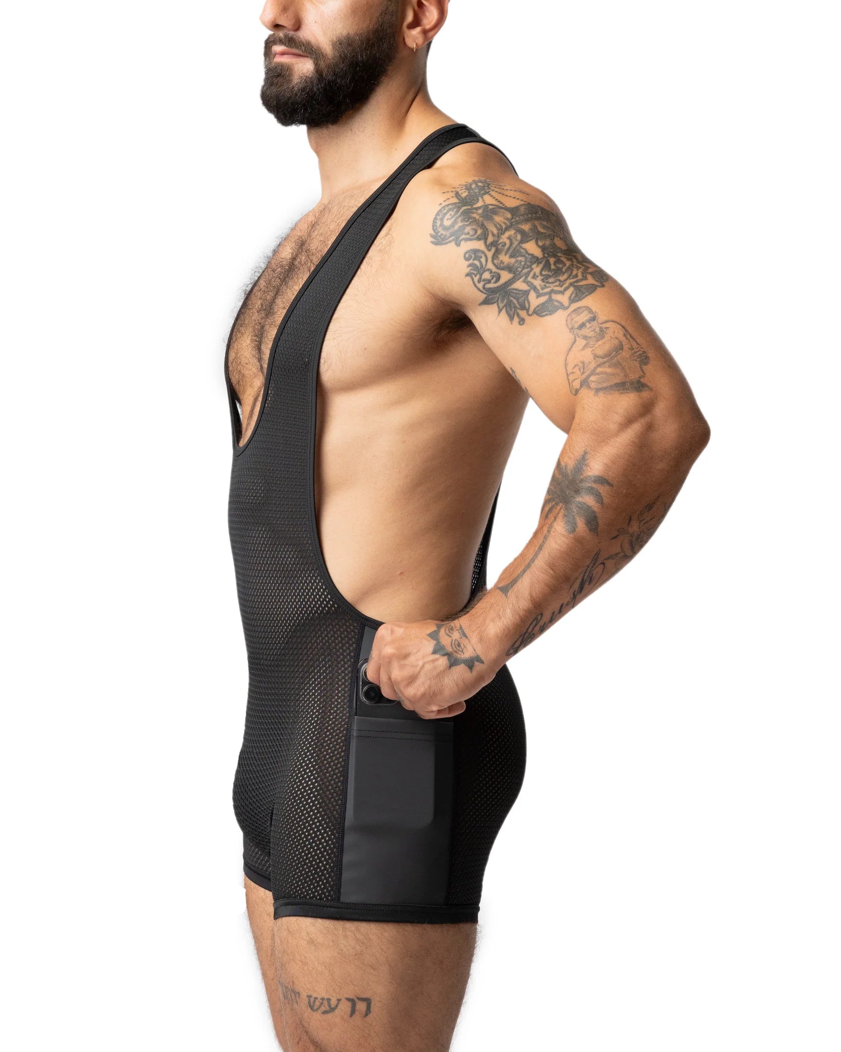 Made of our custom stretch athletic mesh combined with our custom NP Rubber, this singlet leaves nothing to the imagination. The “scoop” cut is our best seller, showing you off in all the right places. Two side pockets are designed to hold your essentials. A printed Snout Logo on the back neck indicates the type of wrestling you’re after.