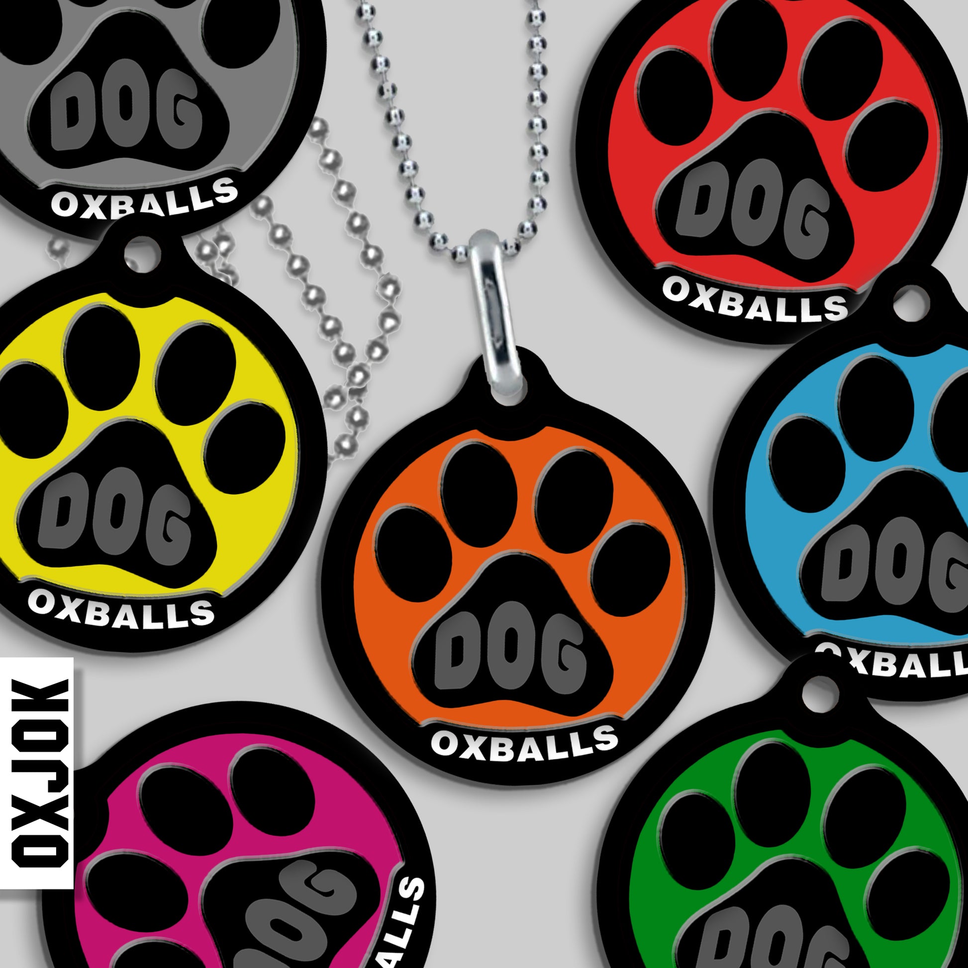 PAW tags included in colors to match all your fetish gear…plus there’s a stainless steel ball-chain to hang a second rubbery tag around your neck, or clip to your gear or keychain.